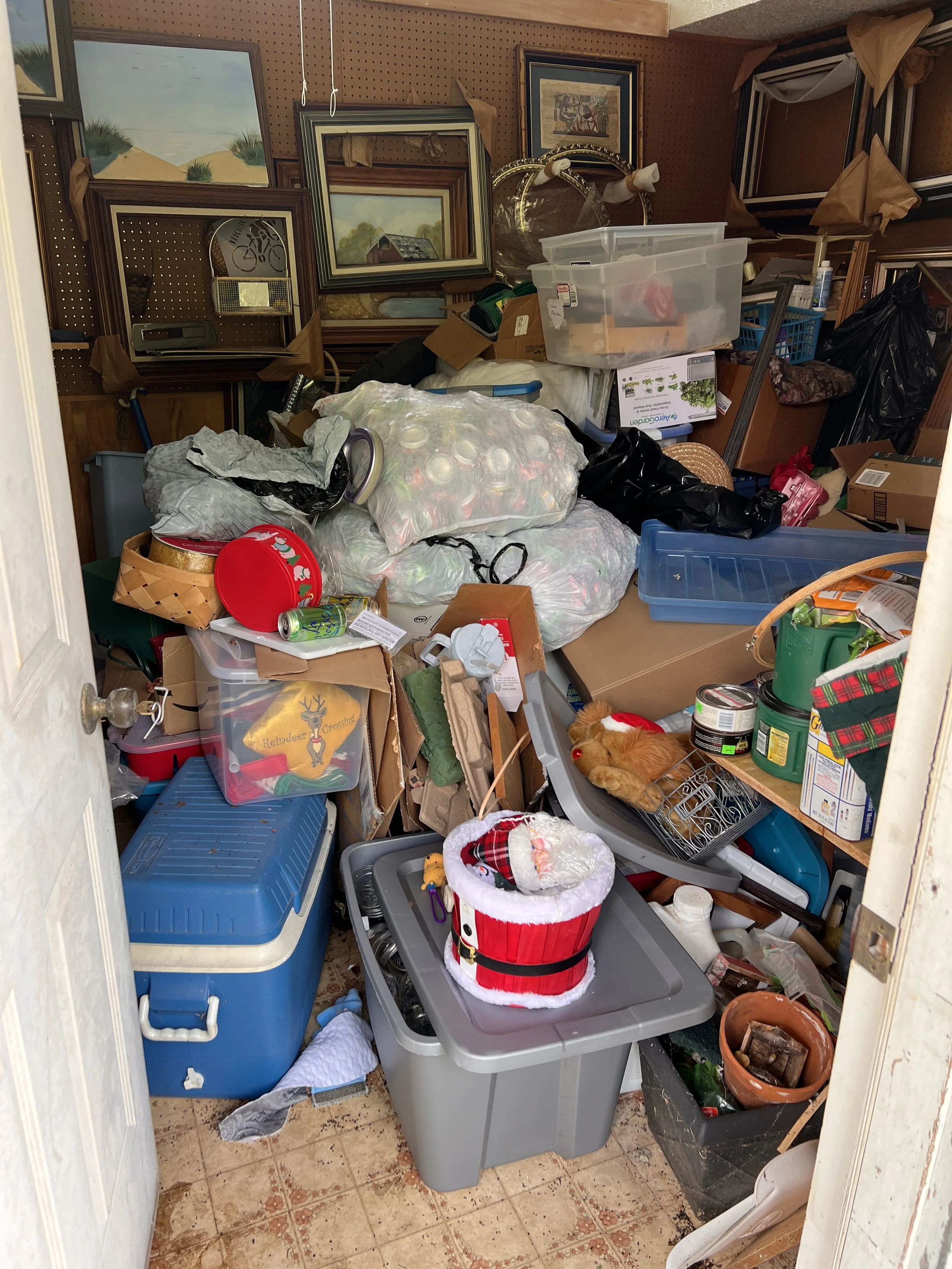 A lot of what you see in the pictures is trash and junk accumulation. I kept assuring Granny that she should not to be embarrassed. We all have a dumping ground. Some of us have just been doing that for a longer period of time. In this case…decades. Other priorities, physical limitations and the overwhelm of the size of the project are all contributions spaces being overtaken with clutter and staying that way. This results in losing the functionality of these spaces, ordering replacements for things you can’t find and the guilt/ mental load knowing this is looming.